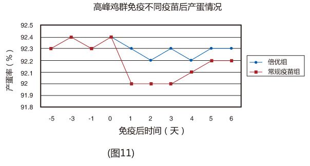 產蛋雞產蛋高峰時免疫倍優?系列產品,產蛋率基本無影響(圖11)。