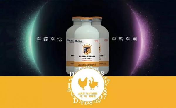 禽流感病毒H5亞型滅活疫苗(D7株+rD8株)“禽盾”適用于水禽和家禽,是針對多分支的H5亞型禽流感的二價滅活疫苗,于2017年3月獲得農(nóng)業(yè)部新獸藥注冊證書【(2017)新獸藥證字10號】。該產(chǎn)品選用D7株和rD8株作為疫苗毒株,其中D7株是華南農(nóng)業(yè)大學廖明教授團隊于2007年廣東發(fā)病鴨群分離,為H5和H9天然重組而產(chǎn)生的天然野毒株,對不同時期的Clade2.3.2均有良好的保護力,對水禽保護效果良好;rD8株為重組病毒,是以D7株為骨架,選用目前流行的H5N1亞型禽流感病毒CG1株(Clade 2.3.4.4)作為HA基因供體利用反向遺傳技術獲得,為全禽源禽流感病毒,具有高效的雞胚增殖能力,以及良好的家禽免疫良性。針對目前國內(nèi)流行的Clade 2.3.4.4和Clade 2.3.2.1分支的H5亞型禽流感病毒,產(chǎn)品的抗原性可以實現(xiàn)全覆蓋,具有良好的交叉保護作用,對雞和水禽均有良好的安全性和免疫效力。經(jīng)過多次臨床試驗證明,禽流感病毒H5亞型滅活疫苗(D7株+rD8株)可有效預防家禽感染H5亞型禽流感。