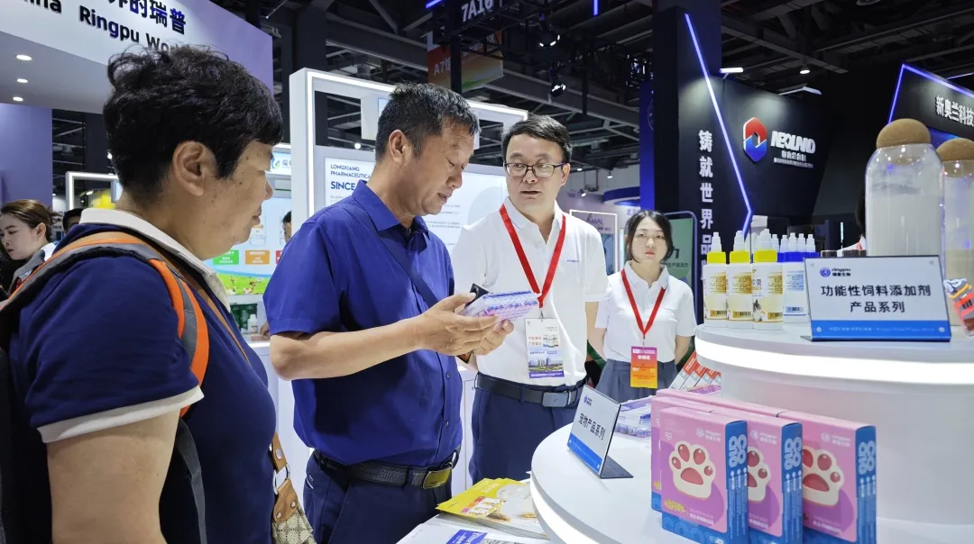 展臺前咨詢客戶絡繹不絕,全方位展示了瑞普生物在添加劑、中藥、化藥和疫苗等領域具有技術優勢的明星產品,瑞普生物憑借高品質、專業化的產品與技術服務吸引了國內外眾多行業伙伴駐足咨詢。