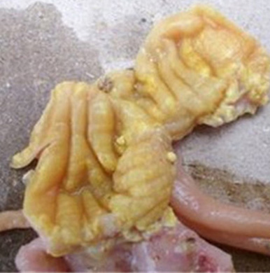 T-2毒素 | 羽毛生長不良,口腔影響胃腸道機能,導致腸道出血以及黏膜水腫壞死潰瘍,神經失調,食欲下降、產蛋性能降低,免疫 |